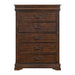 Transform your bedroom into a luxurious retreat with the Northridge 6-Drawer Chest. Constructed of sturdy pine wood with MDF birch veneer, this case piece exudes traditional craftsmanship. The top drawer is lined with coffee-colored felt, providing extra protection for your belongings. The antique style hardware adds a vintage touch to the overall aesthetic. Bring home this exceptional collection in a warm, rich cherry finish and elevate your bedroom décor to new heights of elegance. Features: • Decorative Bevel Edges • Antique Style Dark Metal Hardware • Top Drawer Lined with Coffee Felt • Pine Wood with MDF Birch Veneer • Rich Cherry Finish • 38"W x 16"D x 52"H • Due to lighting, product color may slightly vary from images. Dimensions: Depth: 16.0" x Width: 38.0" x Height: 52.0" Weight: 120.0 lbs.